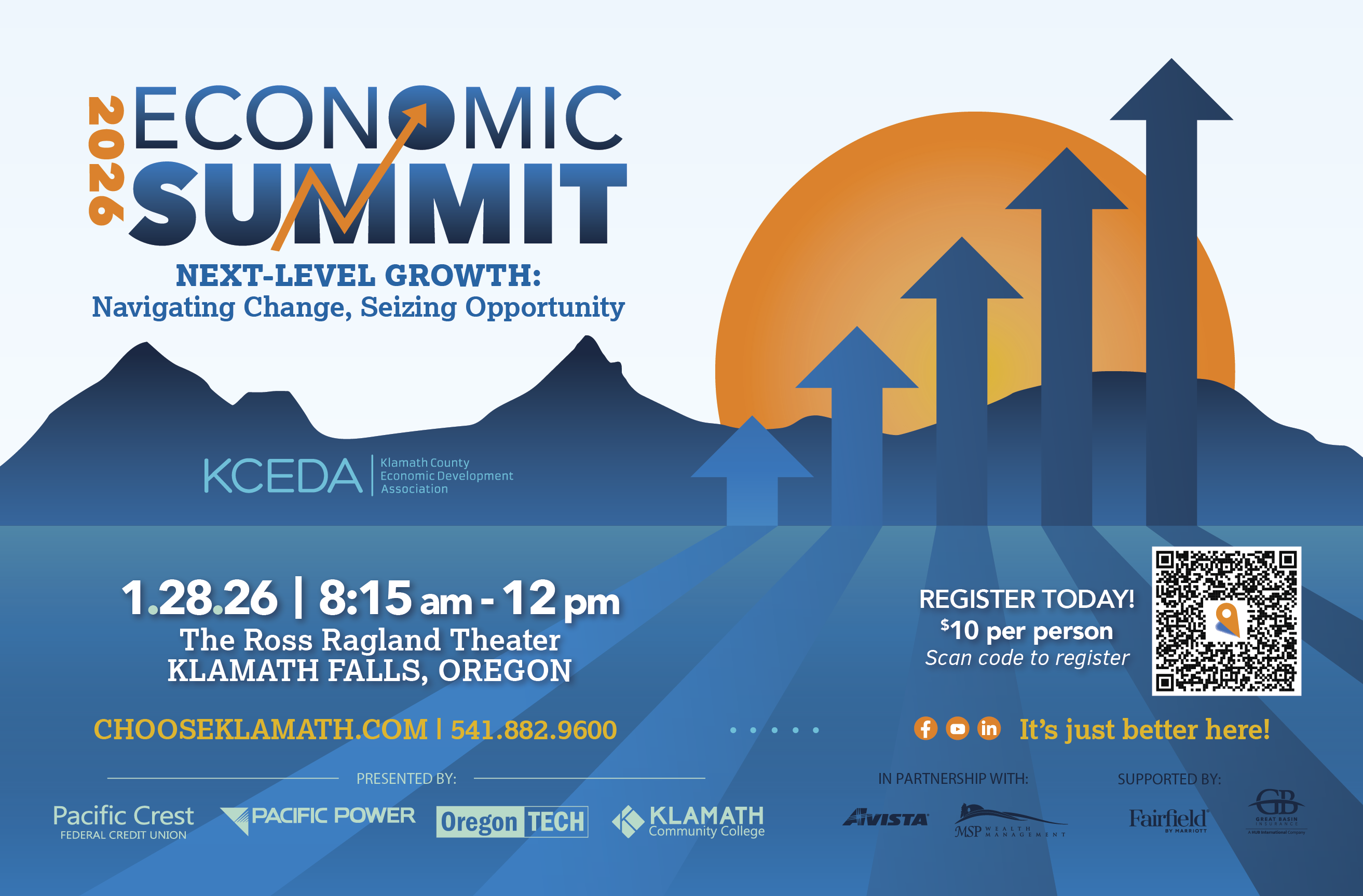 Klamath Falls, OR (December 12, 2025) – The Klamath County Economic Development Association (KCEDA) is proud to announce its 5th Annual Economic Summit, an event that has rapidly grown into one of the region’s most anticipated gatherings for business leaders, policymakers, and community stakeholders. The 2026 Summit will take place on January 28th, 2026, at the historic Ross Ragland Theater.